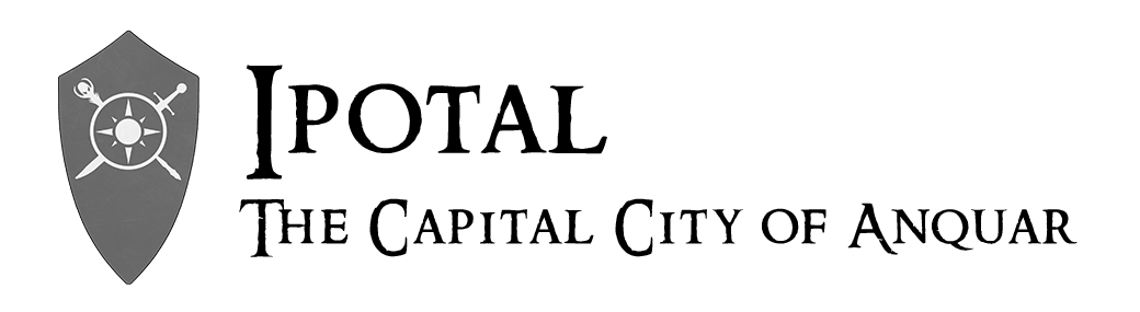 Ipotal is the capital and largest city of the Kingdom of Anquar. It is one of the world's most powerful cities, both because of its immense wealth and astounding military power. It is home to one of the largest armies in the world and has a sizeable naval fleet as well. It is ruled over by King Dalmoran, a self proclaimed demigod, who wields four artifacts of immense magical power. These four magical talismans give him enough power to keep a tight grip over an entire nation and crush any dissent. Over many decades, he has engineered an entire regime of political and military might based around himself and has secured himself an unbreakable position of power. The populace strains against the yoke of this oppresion and tells stories of a time, only two centuries ago, before the nation was controlled by this autocrat. A resistance group struggles against Dalmoran and his armies and threat of all out civil war is always simmering just under the surface of a strained, but civil, society.
