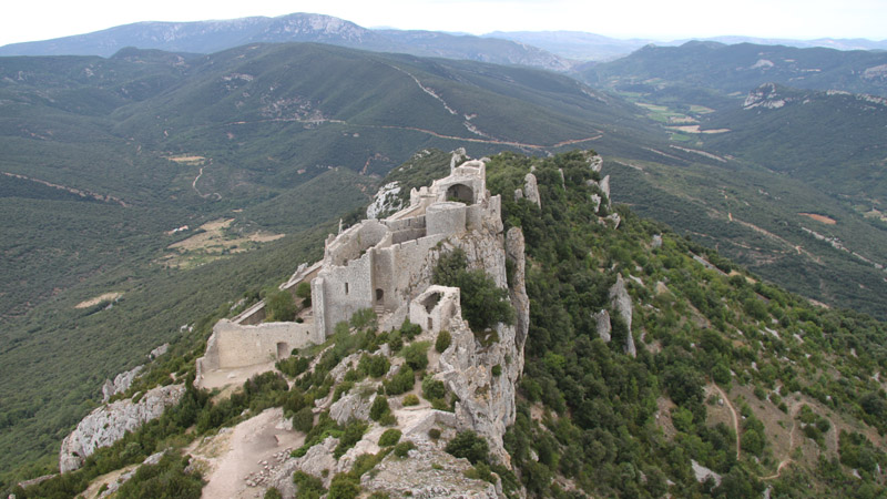 The ruins at Caldris consist of seven buildings and numerous low stone walls arranged around a large central stone plaza. At the center of the stone plaza is a large fountain. The fountain is still working and spills water continuously. Weeds and moss grow upon much of the aging stone. A long stone staircase climbs the side of a mountain to reach Caldris at the very top.