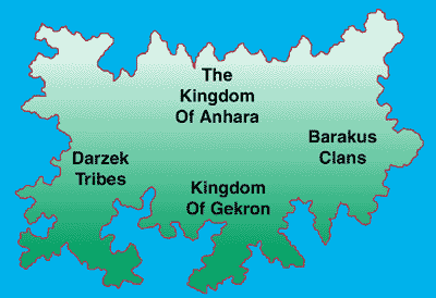 The aggressive Darzek Tribes also attacked the Barakus Clans, which was their undoing. The Clans, having united themselves and formed into a unified whole, turned on the Darzek Tribes with a vengeance and began conquering their culture, tribe by tribe. Rather than obliterate the primitives, much of their culture was enslaved. The Barakus Clans saw that they could take and benefit from what the tribes had to offer. They allowed the Darzek tribes to worship their primitive god-kings and forced their shamans to fight for them. In this way, the Barakus Clans absorbed the Darzek tribes: their magic, their gods and their strength. Utilizing the primitive "blood" magic of the Darzek tribes gave the Clans a new weapon and with this weapon, they turned on the Kingdom of Gekron. While more technologically advanced, the Kingdom of Gekron was unable to withstand the potent combination of Barakus strength and Darzek magic. Gekron soon fell. Again, rather than destroy their enemies, the Barakus Clans absorbed the Gekron culture. From Gekron smiths, the Barakus Clans learned the workings of stone and metal, science and math. With strength, magic and metalcraft, the Kingdom of Anhara was easy prey. From the latter, the Barakus Clans took art, architecture, literature and culture. Battlefields from this period have produced treasure hordes of artifacts and relics while giving historians a good idea of the sequence of events. By the end, the Four Kingdoms War had raged for a century.