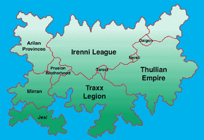 The peoples of the many nations were divided in their views. Some nations welcomed the reign of this new governmental structure. Some opposed it. Civil wars were fought and rebellions were quelled. Soon the Alliance and the Empire dominated the eastern half of Ithria. As their borders expanded, political tensions with the Traxx Legion and the Irenni League grew. By the year 404 on the Thullian Imperial Calendar, most resistance in eastern Ithria had been quelled and the Age of Dreams was declared. Actually, historians mark the Age of Dreams beginning in 364 TIC when Thull XI took the throne. The Age of Dreams is aptly named. Although, the original goal of Thull XI was world domination, he only managed to annex several small nations and fight a few civil wars before his death. Thull XII, the Just, rose to the throne and an age of peace followed.