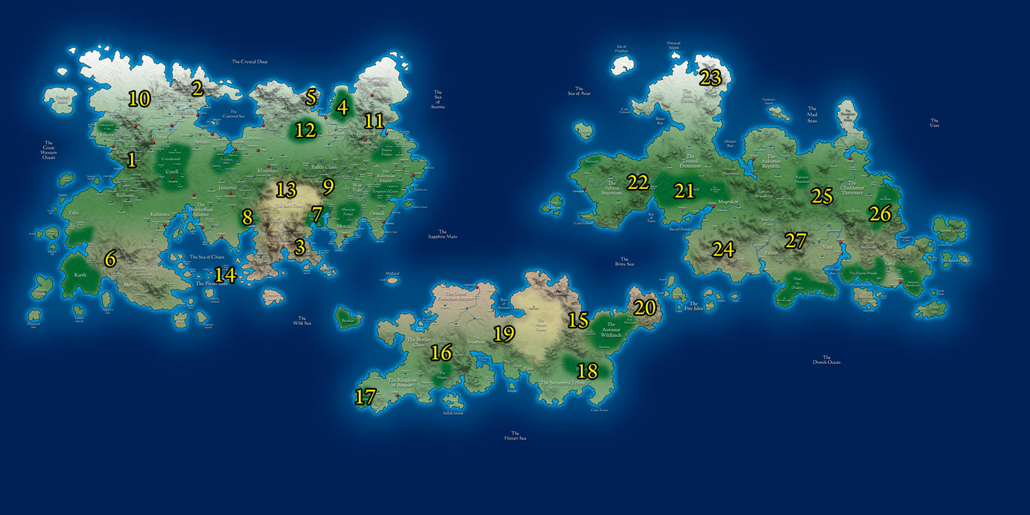 The map below shows the locations and approximate territories of all known dragons. Click a number of details on that specific dragon. Click elsewhere on the map for a larger version.