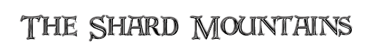 The Shard Mountains, often simply referred to as "the Shards", are a rugged chain of peaks ranging from the temperate area of the Trossoli Dominion to the northeast most coasts beyond the Iron States. Most of these mountains are snow capped giants, many reaching over 8,000 meters tall (26,000 feet). The northern stretches are lashed with severe snowstorms every winter and icy temperatures make the higher slopes very deadly.