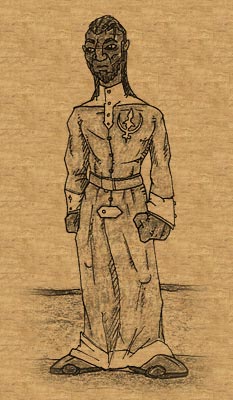 Padashani dress very conservatively. Men wear loose ankle length robes with high collars that button up. Government and military officials always bear the National Emblem of Padashan over their heart. While the poor dress in robes of wool and cloaks of camel hair, the wealthy will dress in silks and satins and decorate their clothes with gold thread and precious jewels.