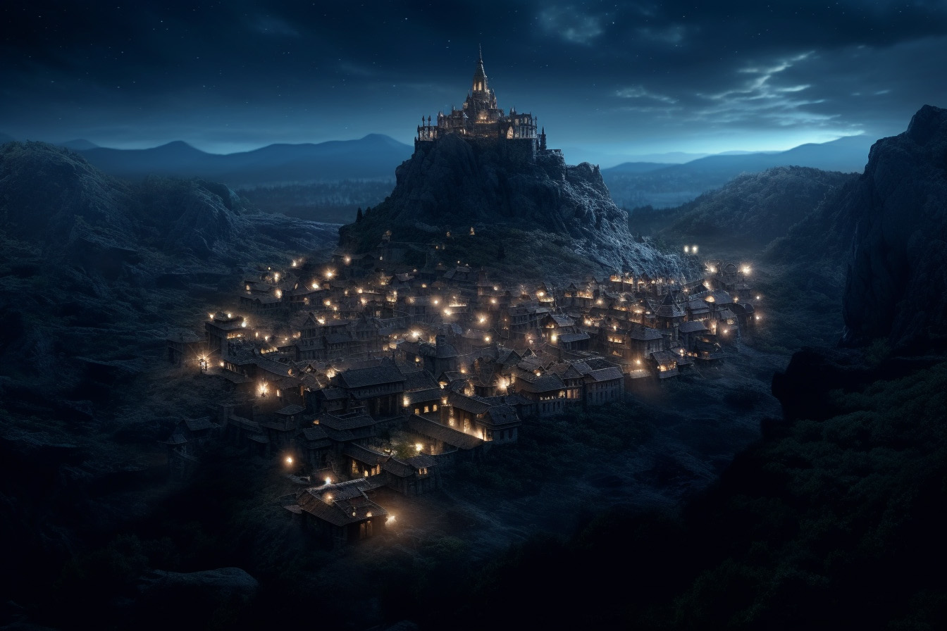As of today, Grimstone now boasts a total population of 40,000 inhabitants. Three quarters of the population live in the hill top city. About 4,000 citizens dwell in the subterranean levels inside Grimstone Hill. And another 6,000 live in squalid and ramshackle buildings clustered at the base of the hill on the southwest side, along the banks of the river.