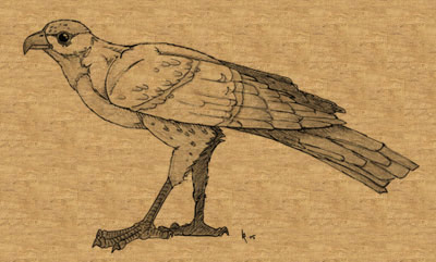Winter hawks feed on small deer, rabbits, etc. They have been known to make off with small children. Winter hawks mate for life and raise a brood of chicks once every five years. When they build their nests, they will often incorporate shiny materials. It is not uncommon for a winter hawk nest to have rings, bracelets, necklaces, blades, bits of armor, chainmail and chain incorporated into its construction.