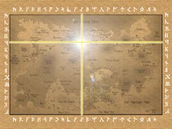 The coordinates indicated on the enchanted map mark the exact same spot as the Kalimuran camp, near the Karth/Myria border. At some point during the adventure, the characters will learn of the existence of the camp and it will be obvious that the map is leading them to it.