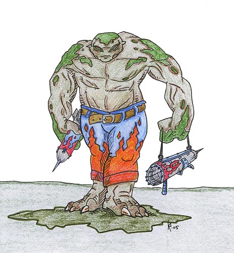 warrior holding a wrath cannon and rocket.