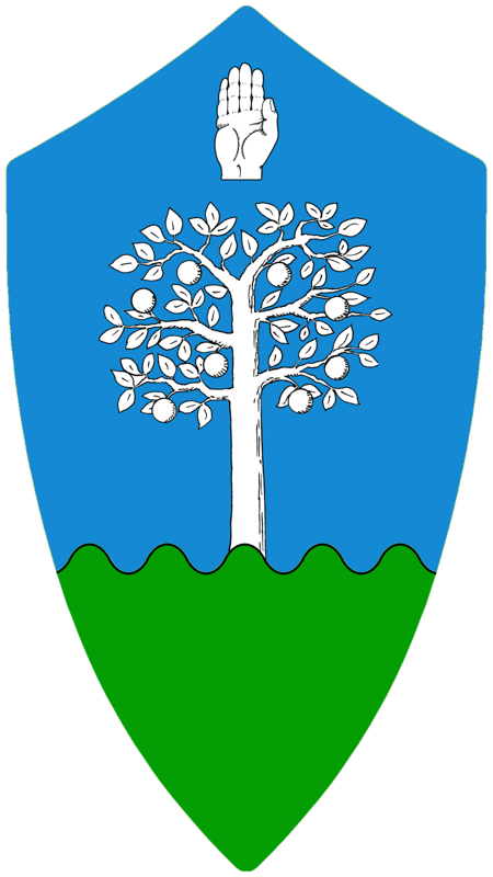 | The Corvenian coat of arms displays a hand over a tree over green water. The hand represents Corvenian magic and it's supremacy over the natural world (the tree). The green water is the Trackless Mire, the swamp lands of Corvenia. |