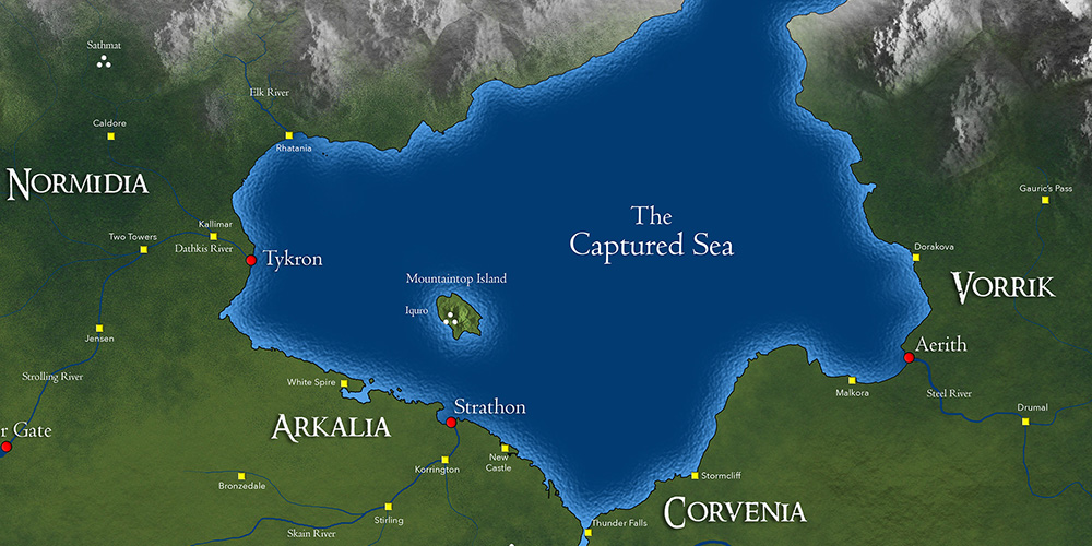 The Captured Sea has excellent fishing waters and all four nations bordering this body of water fish it heavily. Much trade is conducted by merchant vessel between all the nations. Piracy is a minor problem. During the winter, the Straits of Yarin that form the northern "mouth" of the captured sea are filled with ice bergs and extremely dangerous to navigate. Only the most foolhardy captain will attempt sail the northern Captured Sea in winter and only a mad man would attempt to cross the Straits of Yavin. Any ship that tries is doomed to fail.