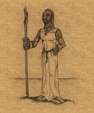 The Aukarians are a handsome people of olive skinned and raven black hair. Men are almost always bearded in some fashion. Both sexes wear their hair long. The Aukarians have broad cheek bones, glittering black eyes, and tall well proportioned frames. They are a remarkably athletic and beautiful race with a self-assured manner and a confidence in their martial skills, crafts and art.