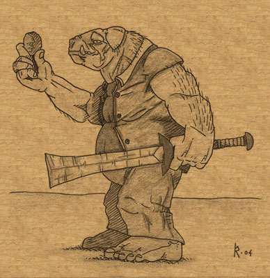 Magrakian mercenaries and bounty hunters are greatly respected in much of Aggradar. While it may be easy enough to outrun the slow moving magrakian, he is still a force to be feared. For there is nothing in this world more persistent than a magrakian bounty hunter and the magrakian's infinite patience usually wins out. When their quarry least expects it, the magrakian will seize them... and then usually proceed to beat them into soft, gooey paste.