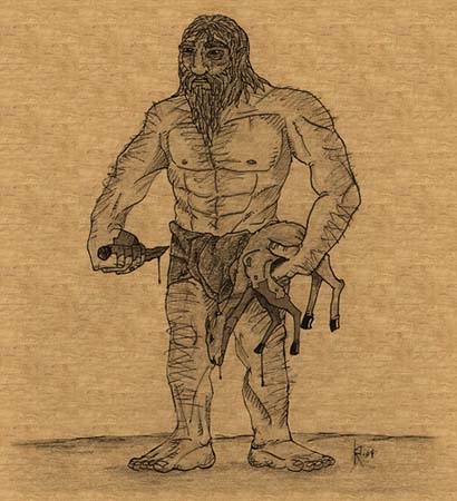 The secambru is the name that collectively refers to several breeds of giants that dwell in remote wilderness regions of eastern Qeshir. The various subraces vary somewhat, but they all share some basic similar traits. The current generations of secambru stand around 4 meters tall (12 feet) and weigh close to ,1500 kilograms (3,300 pounds). They tend to have long, shaggy brown hair and wild unkempt beards. Other than their great size, they very much resemble muscular humans in all respect. The males tend to be larger than the females (who stand 10 feet tall and weight about 2,500 pounds).